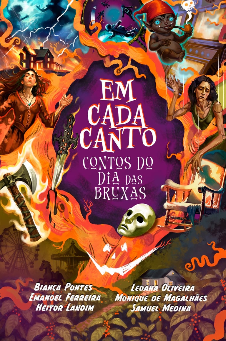 Coletânea de contos de fantasia e terror com Bianca Pontes, Monique de Magalhães, Samuel Medina, Heitor Landim e Leoana Oliveira.